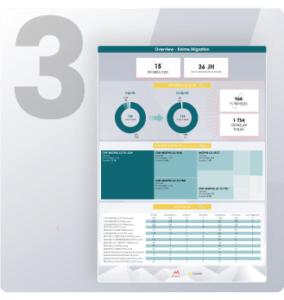 Vue complète de l'ancien système à migrer, vous aidant à prioriser les tâches et à anticiper les risques et les complications.